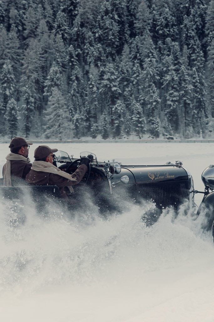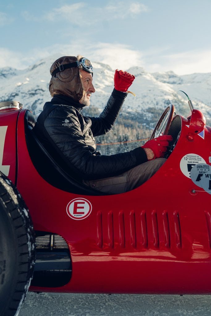 Die Wettbewerbe wurden zu realen Testfeldern, zu offenen Laboren, in denen Stoffe, Schnitte und Schutzfunktionen unter Bedingungen erprobt wurden, die kein Atelier simulieren kann, Wind, Kälte, Konzentration, lange Tage hinter dem Steuer, Momente stiller Anspannung ebenso wie kontrollierter Bewegung. Aus dieser Praxis heraus entstand ein Kleidungsstück, das bis heute als Essenz dieser Verbindung gilt, die Roadster-Jacke, entworfen für das Fahren, nicht für das Bild, mit Details, die aus Erfahrung entstanden sind und nicht aus Dekoration, von der Sonnenbrillentasche bis zum doppelten Rückenschlitz, eine klare Silhouette, die Bewegungsfreiheit zulässt und zugleich Schutz bietet, reduziert im Ausdruck und präzise in der Funktion. Parallel dazu schrieb das Team eine eigene Erfolgsgeschichte im historischen Motorsport, mit Titeln, Siegen und Auftritten bei legendären Veranstaltungen wie der Mille Miglia oder der Coppa d’Oro delle Dolomiti, bis hin zu internationalen Concours, bei denen Fahrzeuge weniger bewertet als gelesen werden, als kulturelle Zeugnisse einer Epoche, in der Technik und Ästhetik noch untrennbar verbunden waren. Diese Haltung setzt sich heute in der Partnerschaft mit The I.C.E. St. Moritz fort, jenem Winter-Concours, der klassische Automobile auf den gefrorenen See verlegt und das traditionelle Format in eine dynamische, fast poetische Bewegung übersetzt, bei der Motoren nicht dominieren, sondern Teil einer größeren Choreografie aus Eis, Licht, Geräusch und Landschaft werden.