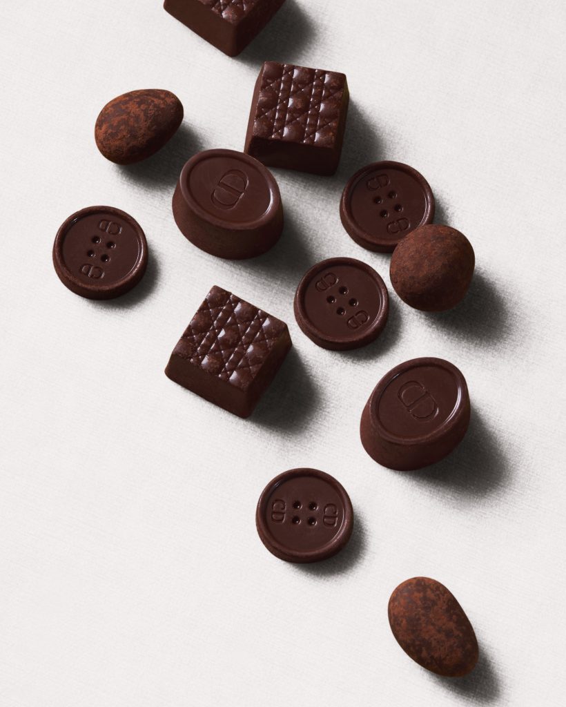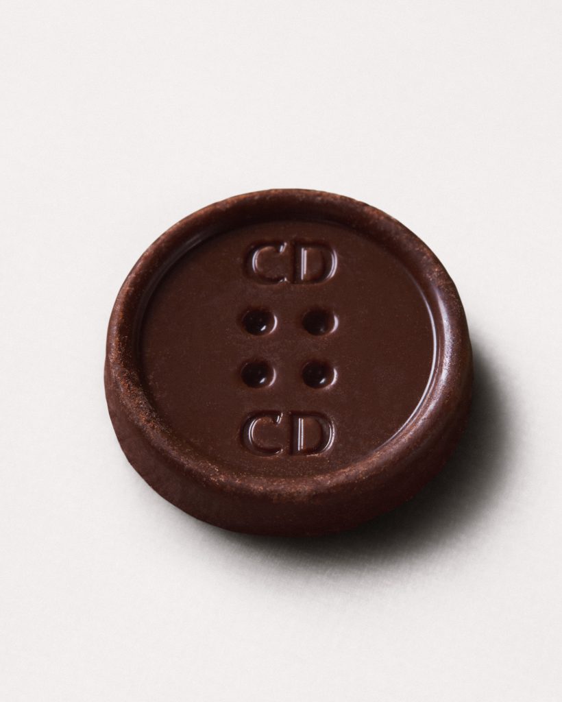 Im Inneren des monumentalen Eis verbirgt sich eine zweite Ebene: eine Vielzahl kleiner Schokoladenkreationen, die ikonische Dior-Motive aufnehmen. Das Cannage-Muster – ursprünglich von den Stühlen der ersten Dior-Show inspiriert – erscheint als filigranes Relief. Knöpfe und die Initialen „CD“ werden zu essbaren Miniaturen. Jede dieser Formen ist nicht nur dekorativ, sondern geschmacklich durchkomponiert. Haselnüsse, Mandeln, knuspriges Puffreis-Praliné und ein Hauch Sobacha – gerösteter Buchweizentee – sorgen für eine subtile, leicht nussige Tiefe und eine feine Knusprigkeit. Eine sensorische Reminiszenz an die Genusskultur, die Christian Dior selbst schätzte.