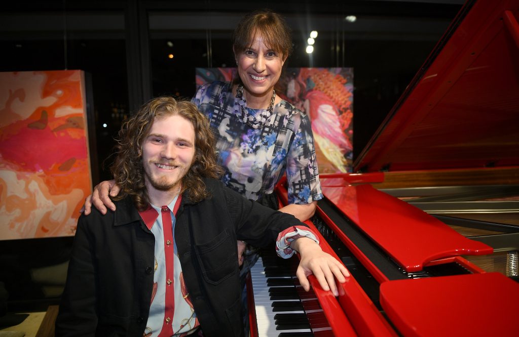 Dass diese Arbeiten ausgerechnet in den Räumen von Steinway & Sons gezeigt wurden, verstärkte die inhaltliche Verbindung auf beinahe selbstverständliche Weise. Der Ort, international Synonym für höchste Klangkultur, wurde an diesem Abend zur Bühne eines stillen Dialogs zwischen zwei Ausdrucksformen. Im Zentrum: ein roter Steinway-Konzertflügel D-274, der mit einem Motiv aus Fiereks Serie inszeniert war und selbst Teil der künstlerischen Erzählung zu werden schien.